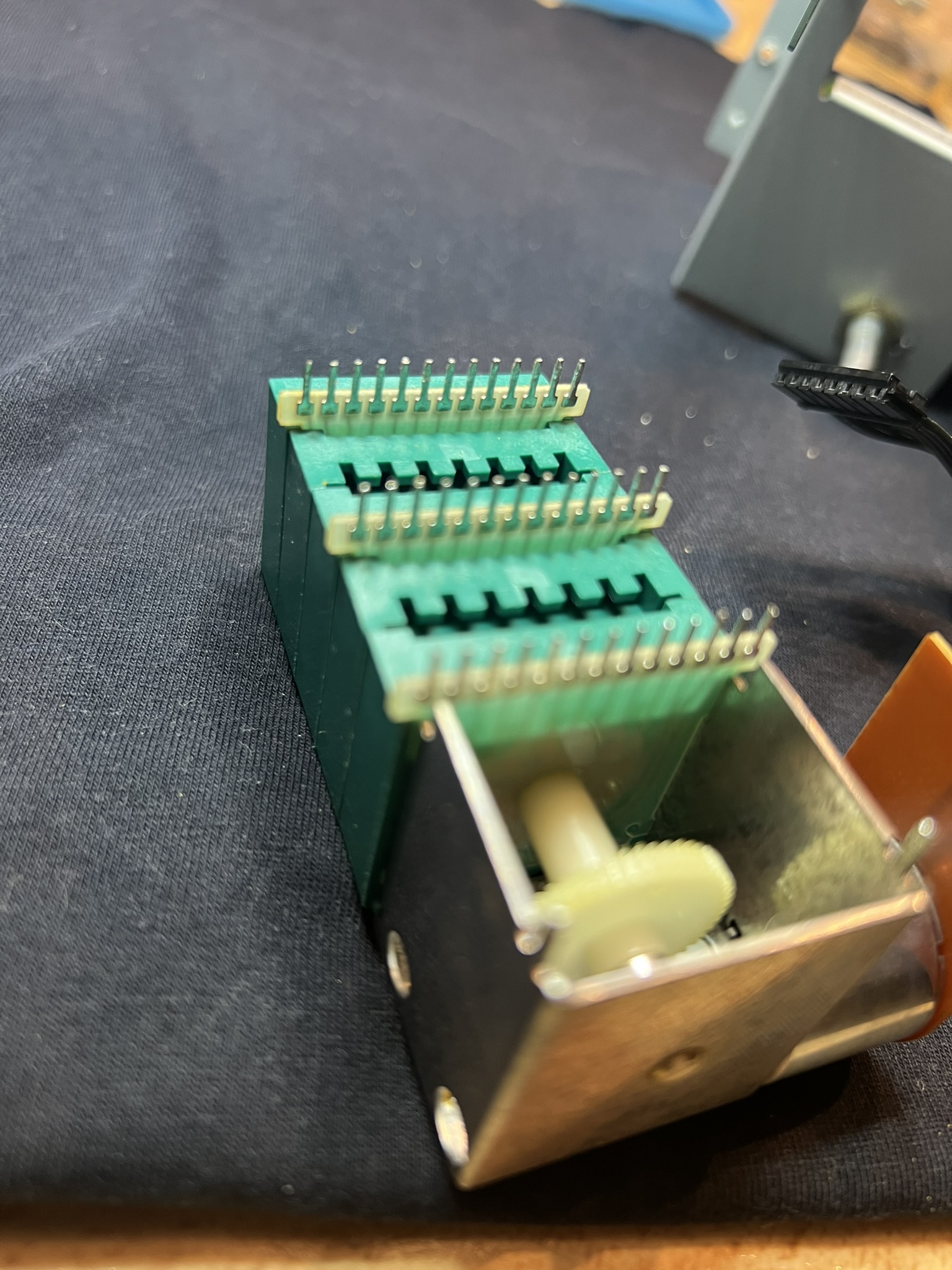 Da es durch den sehr kunstvollen Kabelbaum im Quad 303 zu einer schlechten Kanaltrennung und teils schwer zu handhabenden Einstreuungen kommen kann, habe ich mich entschieden, einem Konzept nach Ideen von Dada Electronics zu folgen, und die neu bestückten Platinen quasi frei fliegend zu verdrahten.